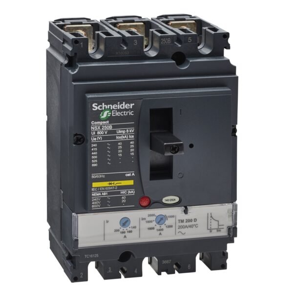 Schneider LV431111 | circuit breaker ComPact NSX250B, 25 kA at 415 VAC, TMD trip unit 200 A, 3 poles 3d