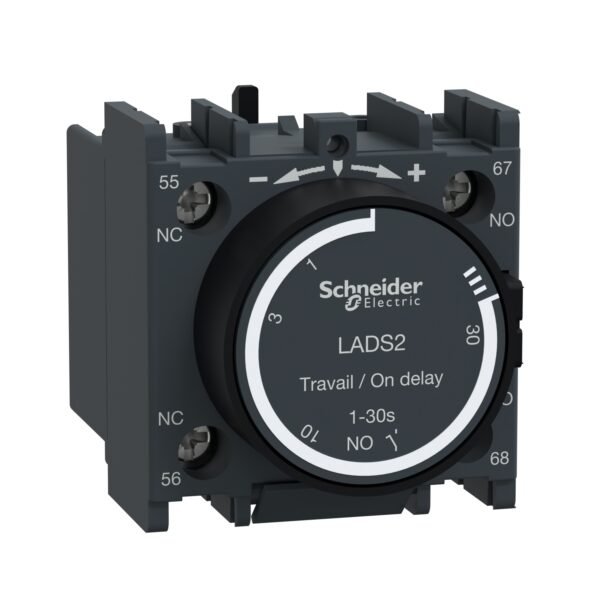 Schneider LADT2 | Time delay auxiliary contact block, TeSys D, 1NO + 1NC, on delay 1-30 s, front mounting, screw terminals