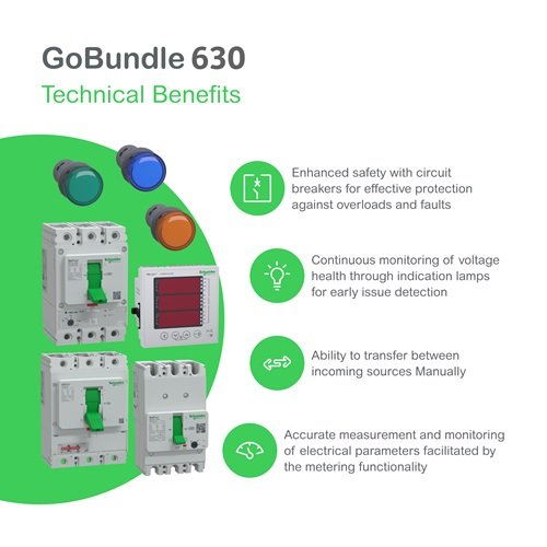 - GoPact MCCB 800, 3 poles, 70kA at 415VAC, 630A