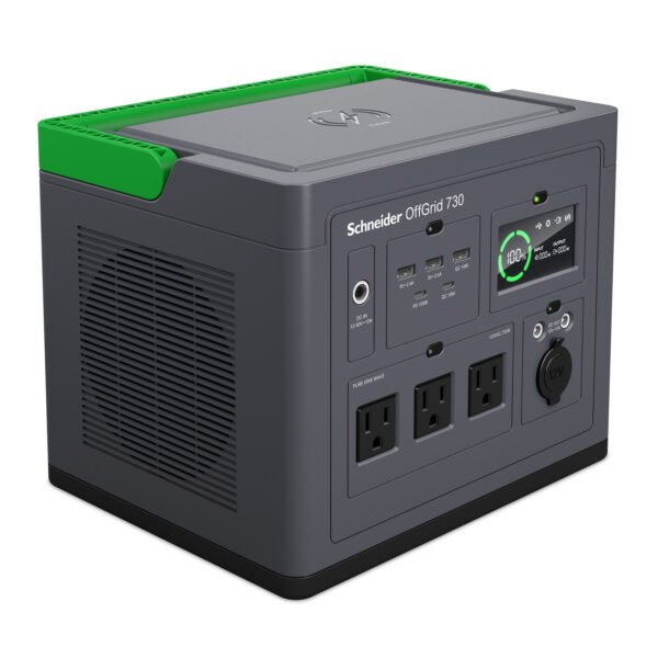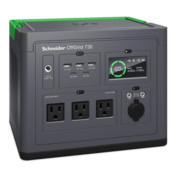 PPS730 | Schneider OffGrid Portable Power Station 730, 700W, 120V, 738Wh Lithium-ion, LCD, 3 NEMA, Sinewave, 3 USB-A, 2 USB-C, Wireless Charger