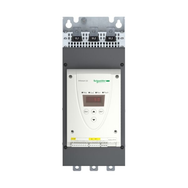 The Schneider ATS22C11Q is a soft starter from the Altistart 22 series, designed to optimize the startup and shutdown of asynchronous motors. It reduces mechanical stress, extends motor lifespan, and enhances overall system efficiency.