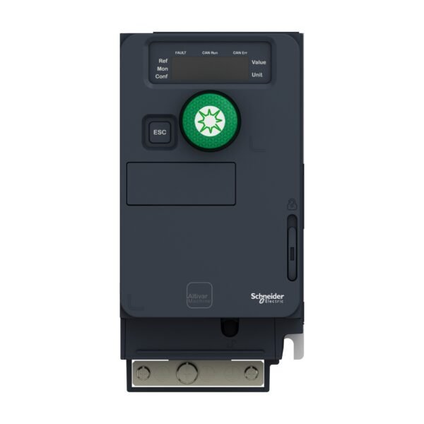 The Schneider Altivar ATV320U06M2C412 is a compact variable speed drive (VSD) specifically designed for solar water pumping applications. It is rated at 0.55 kW and operates on a single-phase voltage of 200 to 240V.