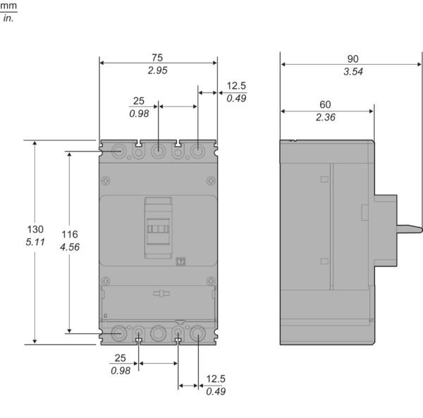- High Breaking Capacity: With a breaking capacity of 25kA at 415VAC, it can safely interrupt high fault currents.
