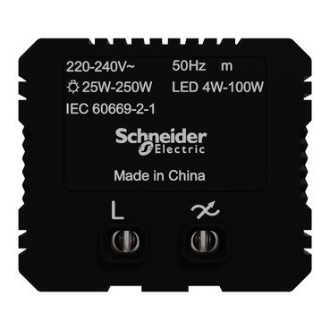 The Schneider M3TB1_250DM is a rotary dimmer switch from the Miluz E series, designed for smooth and efficient control of lighting intensity in residential and commercial environments. This mechanism-based dimmer is installed with a rotary knob and is finished in white, matching the elegant, minimal aesthetic of the Miluz E line.