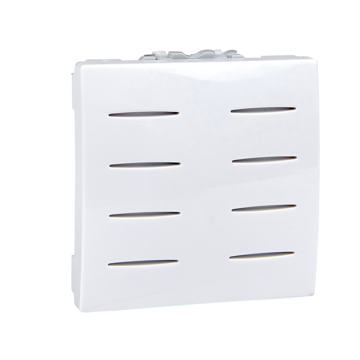 The white finish ensures it blends well with other Unica devices and fits with modern interiors.