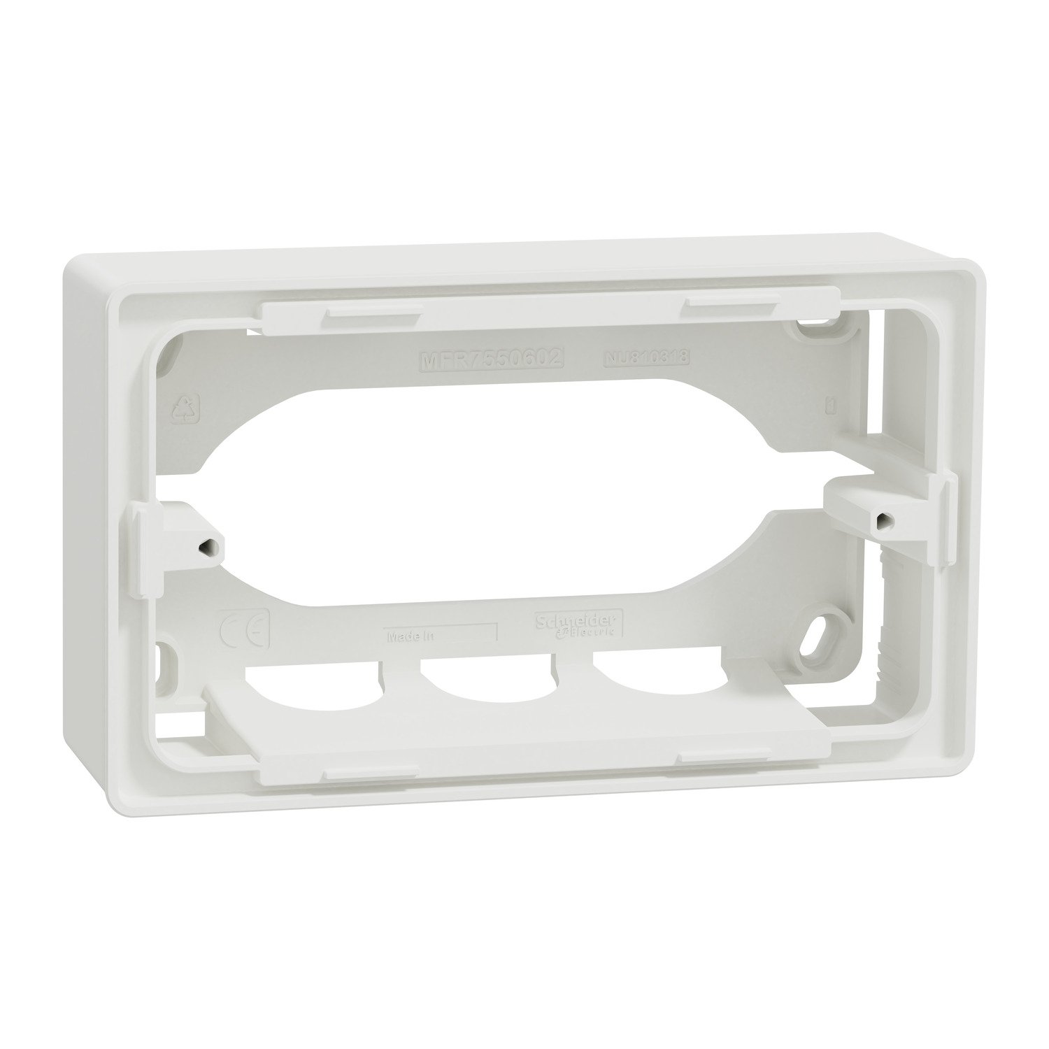 The Schneider NU810418 surface box is suitable for a wide range of residential applications, especially where surface-mounted wiring is necessary. It is perfect for use in areas like living rooms, kitchens, or home offices, where multiple devices need to be housed in a single location but wall recessing isn’t feasible.
