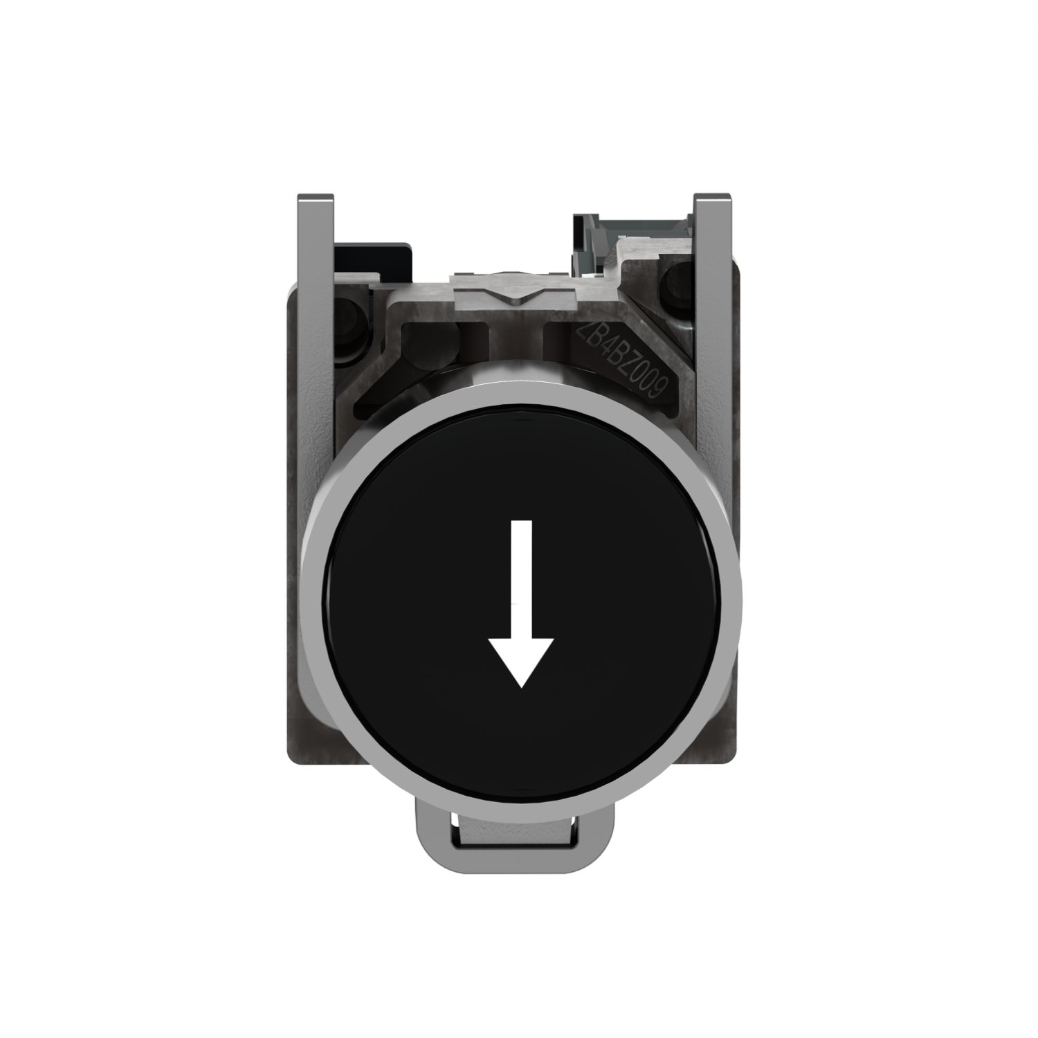 Schneider XB4BA3351 Harmony | Push button, metal, flush, black, Ø22, spring return, marked DOWN ARROW, 1 NO