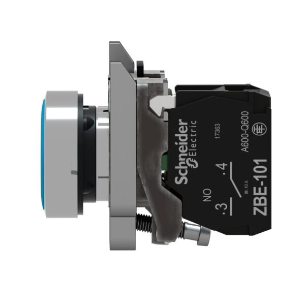 Schneider XB4BA61 | Push Button, Metal, Flush, Blue, Ø22mm, Spring Return, 1 NO