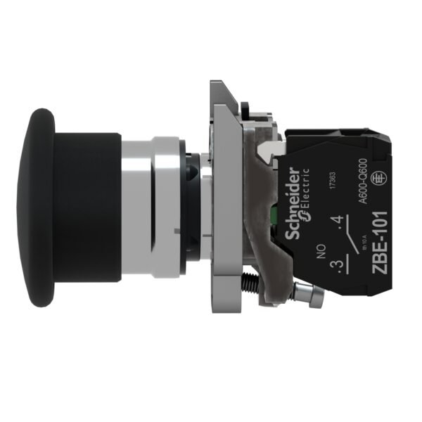 Schneider XB4BC21 Harmony | Push button, metal, black mushroom Ø40, Ø22, spring return, unmarked, 1 NO