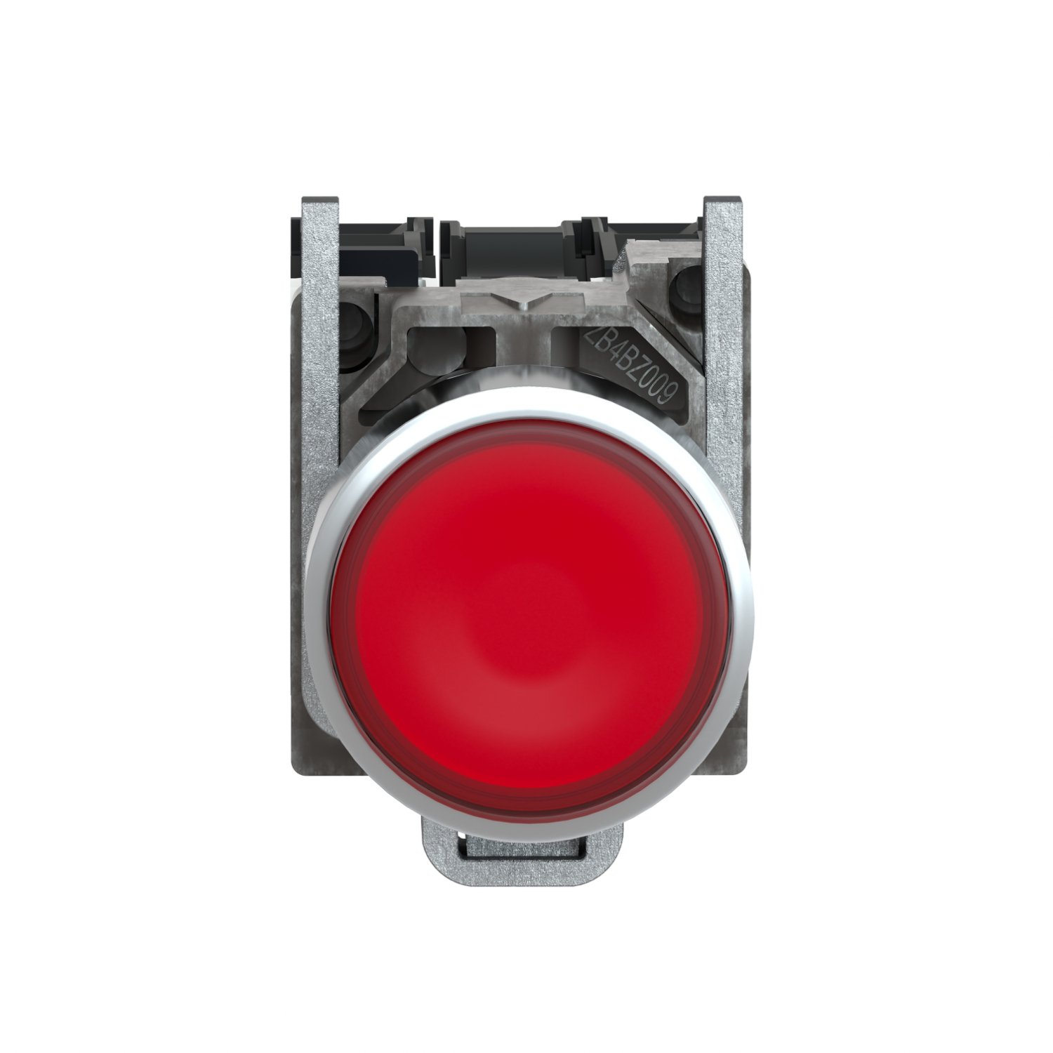 Schneider XB4BW3465 Harmony | Illuminated push button, metal, flush, red, Ø22, spring return, <= 250 V, 1 NO + 1 NC