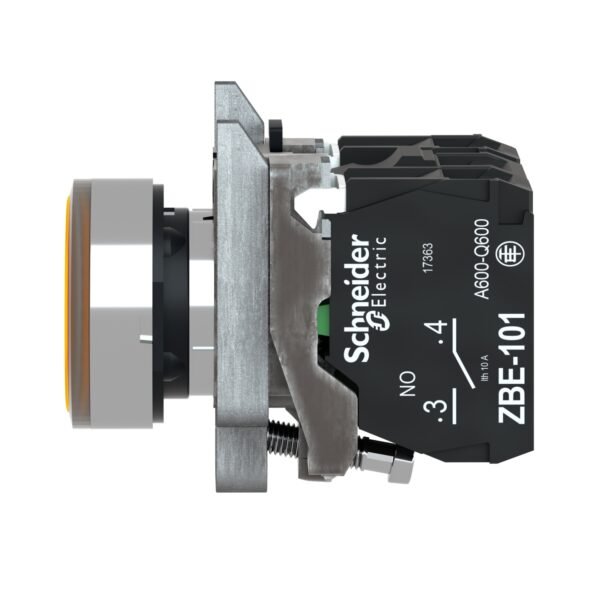 Schneider XB4BW35B5 | Illuminated Push Button, Metal, Flush, Orange, Ø22, Spring Return, 1 NO + 1 NC 24 V AC/DC Description